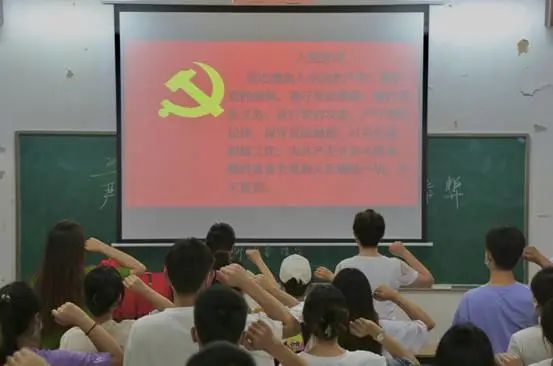 活动在全体参会人员高唱国歌中拉开帷幕,随后,在宣誓长的带领下,大家举起右手重温入党誓词。