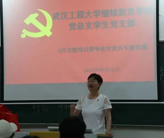 :6月15日中午,继续教育学院在东区305教室举办了2022届毕业生党员教育暨主题党日活动。学院党支部书记吴永梅、副书记陈欣、学生党支部书记吴超以及2022届毕业生党员、党员代表参加了活动。